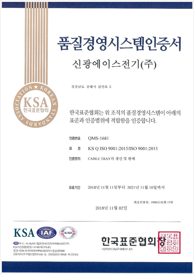 품질경영시스템 인증서